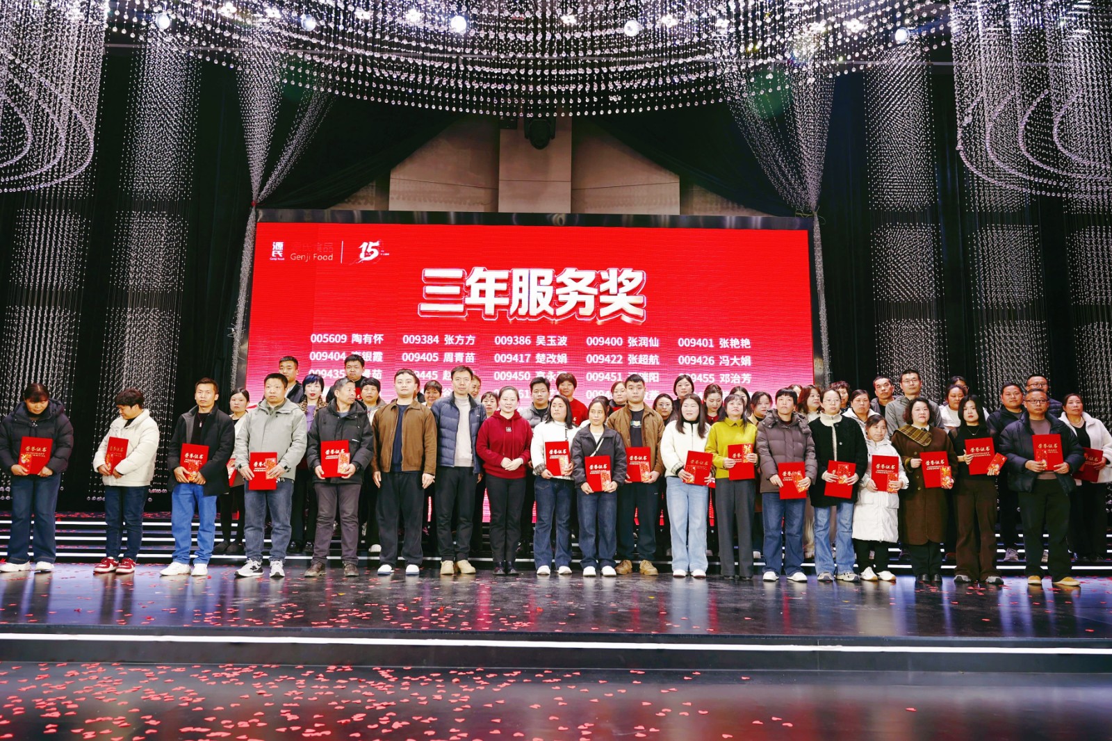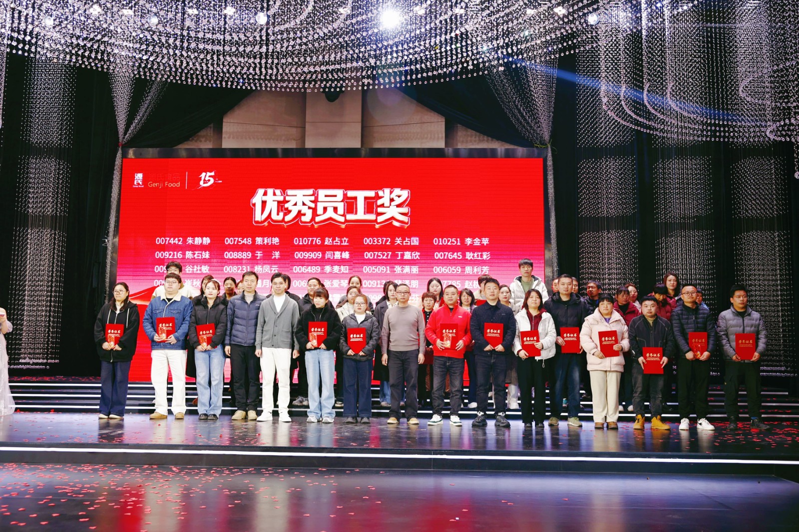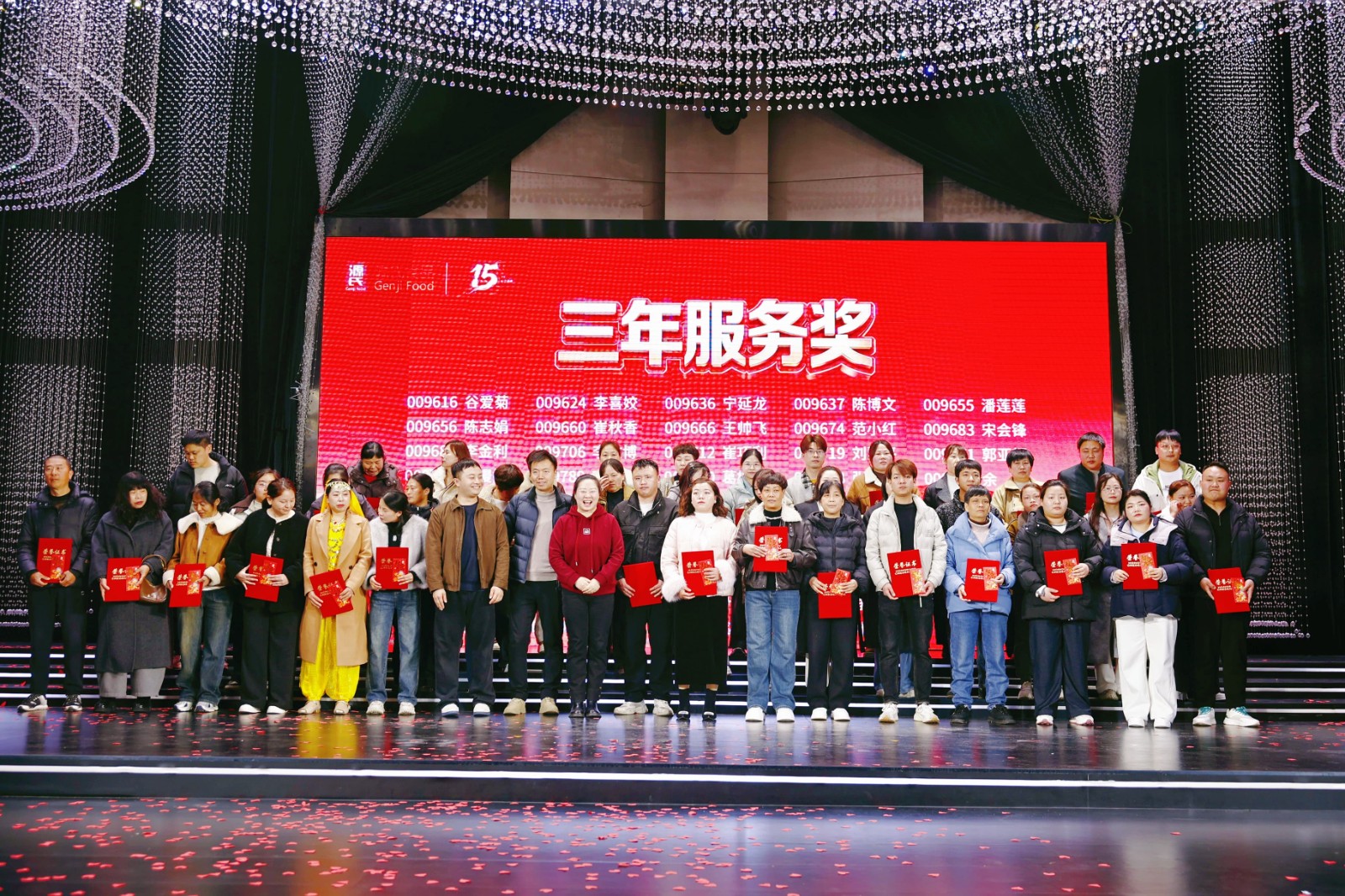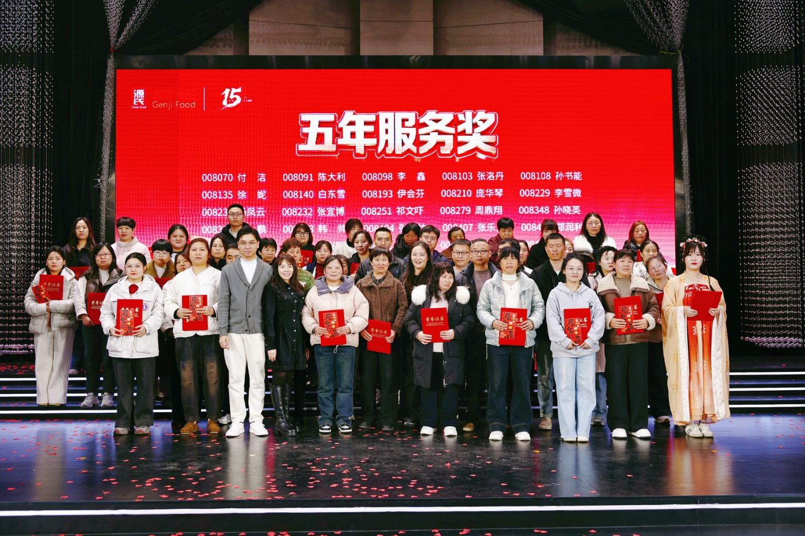 海爾冰箱、洗衣機(jī)、熱水器、電飯煲……從大宗家電到實(shí)用家居,公司為大家貼心考慮,設(shè)立六等獎(jiǎng)至一等獎(jiǎng)層層遞進(jìn),獎(jiǎng)品及獎(jiǎng)金池共計(jì)70余萬(wàn)元。此外,本次年會(huì)特設(shè)立15周年特別抽獎(jiǎng)環(huán)節(jié),為不同工齡的員工送上專屬福利,圍桌獎(jiǎng)、現(xiàn)場(chǎng)合作伙伴傾情“加碼”的數(shù)萬(wàn)元現(xiàn)金大獎(jiǎng)讓幸運(yùn)覆蓋全場(chǎng),歡聲笑語(yǔ)間,傳遞著源氏大家庭的溫暖與關(guān)懷。節(jié)目表演獎(jiǎng)的頒發(fā),更致敬每一位臺(tái)前幕后的表演者,讓熱愛(ài)與付出皆有回響。