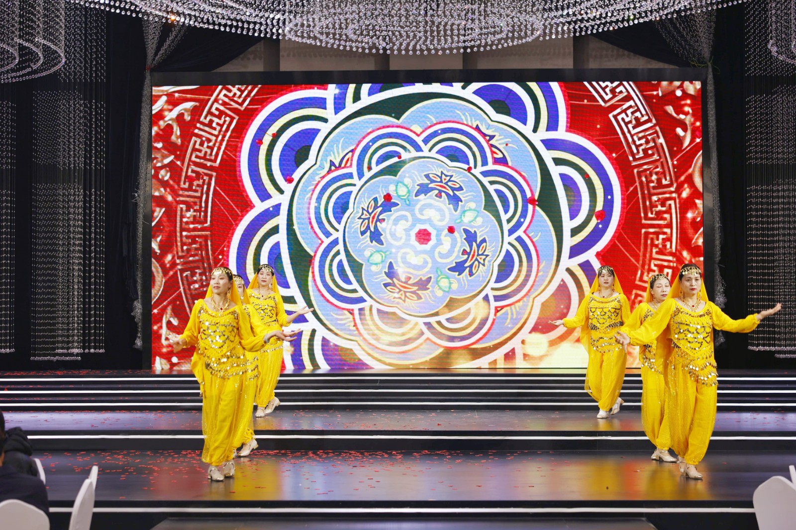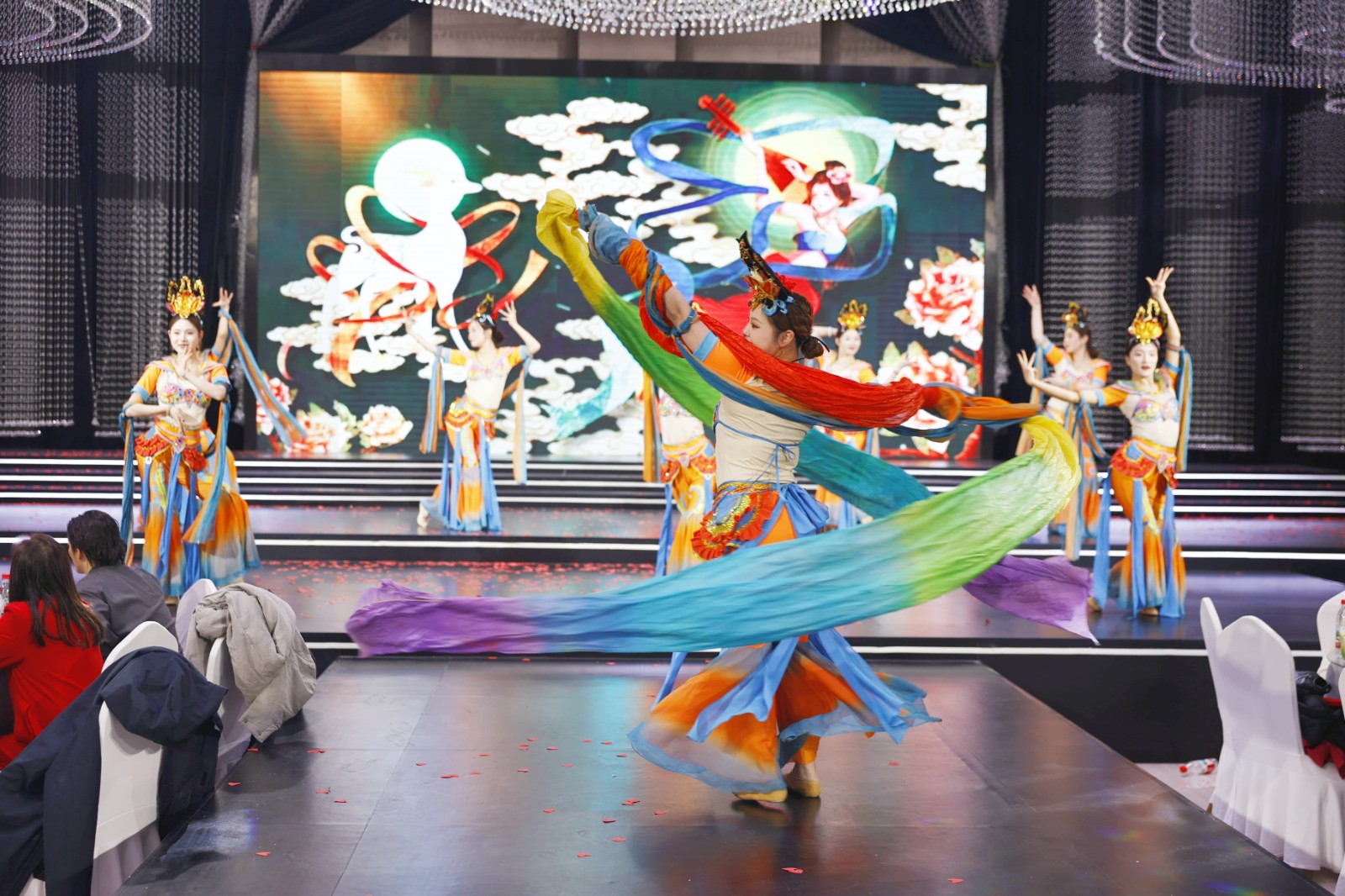 員工自編自演的節(jié)目輪番登場(chǎng),舞蹈《歡樂(lè)的跳吧》《好運(yùn)全來(lái)》點(diǎn)燃現(xiàn)場(chǎng)氛圍,越調(diào)《四千歲你莫要羞愧難當(dāng)》、豫劇《朝陽(yáng)溝》盡顯傳統(tǒng)文化魅力,合唱《水手》唱出奮斗初心,相聲《馬年新說(shuō)》融合傳統(tǒng)與新潮,情景劇《我要暴富》詼諧幽默,演繹電商賣(mài)貨的感染力,朗誦《我們的擔(dān)當(dāng)》詮釋源氏人的責(zé)任與堅(jiān)守。敦煌一夢(mèng)、我的新衣等友情表演更將盛典氛圍推向高 潮,臺(tái)下掌聲雷動(dòng),臺(tái)上星光閃耀,每一個(gè)節(jié)目都是源氏人多才多藝、凝心聚力的生動(dòng)體現(xiàn)。
