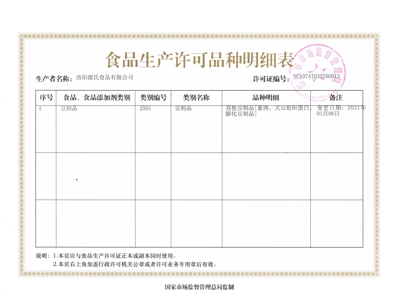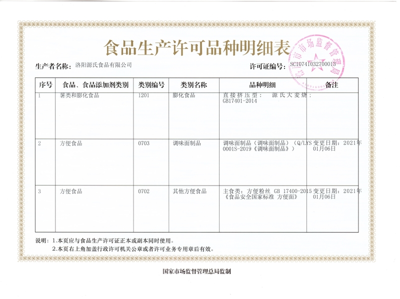 源氏食品生產(chǎn)許可證及細(xì)節(jié)列表 發(fā)布時(shí)間:2021-03-02作者:來(lái)源:洛陽(yáng)源氏食品有限公司點(diǎn)擊:6334 上一篇:營(yíng)業(yè)執(zhí)照 下一篇:老式大辣片出廠檢驗(yàn) 分享到:0 用手機(jī)看 拍下二維碼,信息隨身看 試試用微信掃一掃,在你手機(jī)上繼續(xù)觀看此頁(yè)面。